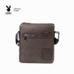 Playboy: รุ่น Blitz FC บลิทซ์ เอฟซี กระเป๋าสะพายข้างผู้ชาย รหัส ST-B251PBM307-BR ดีไซน์ทรงเเมสเซนเจอร์แต่งลายตารางด้านหน้า สีOakBrown