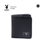 Playboy: รุ่น Iconic Wallet Bag กระเป๋าสตางค์ผู้ชาย รุ่น ST-WA253PBM082-BK ดีไซน์แบบพับสกรีนลายโลโก้ มีช่องใส่เหรียญ สี Obsidian Black