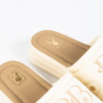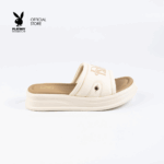 Playboy Shoe&Bag TH รองเท้าแตะแพลตฟอร์ม รหัส ST-H252C1208 ดีไซน์แบบสวมหนังบุนวมโลโก้สีน้ำตาลแต่งอะไหล่หมุดทอง สี Cream Beige