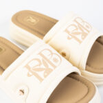 2.ดีไซน์ทรงแตะแบบสวมหนังบุนวมโลโก้สีน้ำตาลแต่งอะไหล่หมุดทอง
