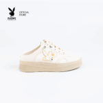 Playboy Shoe&Bag TH รุ่นMule Sneakers รองเท้าผ้าใบเปิดส้น รหัส ST-H251C1206-CR ดีไซน์แต่งโลโก้กระต่าย อะไหล่ฝังเพชร สี Creamy white