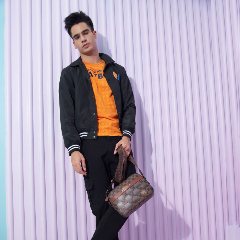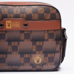 Playboy Shoe&Bag TH กระเป๋าชายทรงกล้องลายหมากฮอตบน PVC-น้ำตาล ST-B232PBM240-BR