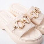 Playboy Shoe&Bag TH รองเท้าแตะส้นหนาแต่งอะไหล่วงกลมคู่-ขาว ST-HS232C082-WH