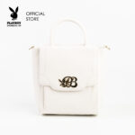 Playboy Shoe&Bag TH รุ่น Aura Bag กระเป๋าสะพายข้างผู้หญิง รหัสST-B251PB602 ดีไซน์ทรงTop Handle Bag ช่องด้านหน้าแต่งฝากผิด แต่งอะไหล่ลูกบิดโลโก้มี 2 สี Midnight และ White cloud