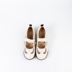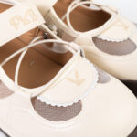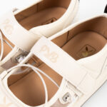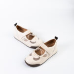 2.ดีไซน์รองเท้าผ้าใบทรงบัลเล่ต์ แต่งผ้าตาข่ายและแถบ Velcroโลโก้แบรนด์คาด