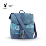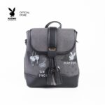 Playboy Shoe&Bag TH รุ่น Lively backpacks กระเป๋าเป้ผู้หญิง รหัส ST-B244PB588 ดีไซน์สกรีนลายการาฟฟิกโลโก้ มี 2 สี Soot Black และ สี Blue Jeans