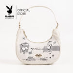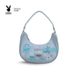 Playboy Shoe&Bag TH รุ่น Lively Bag กระเป๋าสะพายข้างผู้หญิงรหัสST-B244PB590 ดีไซน์ทรงHobo BAG สกรีนลายการาฟฟิกโลโก้ มี2สี Chalky White และสี Blue Jeans