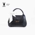 Playboy Shoe&Bag TH รุ่น MIRA Bag กระเป๋าสะพายข้างผู้หญิง รุ่น ST-B252PB618 ดีไซน์ทรงHandle Bag ปักโลโก้ แต่งโบว์ขาว แถมกระเป๋าลูก ด้านในมี 2 สี สีMidnight Black และVanilla Cream