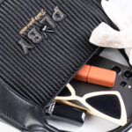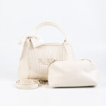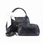 4.ดีไซน์ ดีไซน์ทรงHandle Bag ปักโลโก้ แต่งโบว์ขาว แถมกระเป๋าลูก ด้านใน