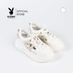 Playboy Shoe&Bag TH รุ่น Punch Sneakers รองเท้าผ้าใบเปิดส้น รุ่นST-H253C1223-WH(ควร+1ไซส์)ดีไซน์ซีทรู แต่งโลโก้กระต่าย สีTaupe White
