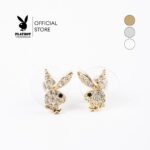 PLAYBOY Earring Collection ต่างหู รหัส ST-253E359H ดีไซน์Miniโลโก้กระต่ายฝังเพชร มีด้วยกัน 3 สี สี Gold/Black/White